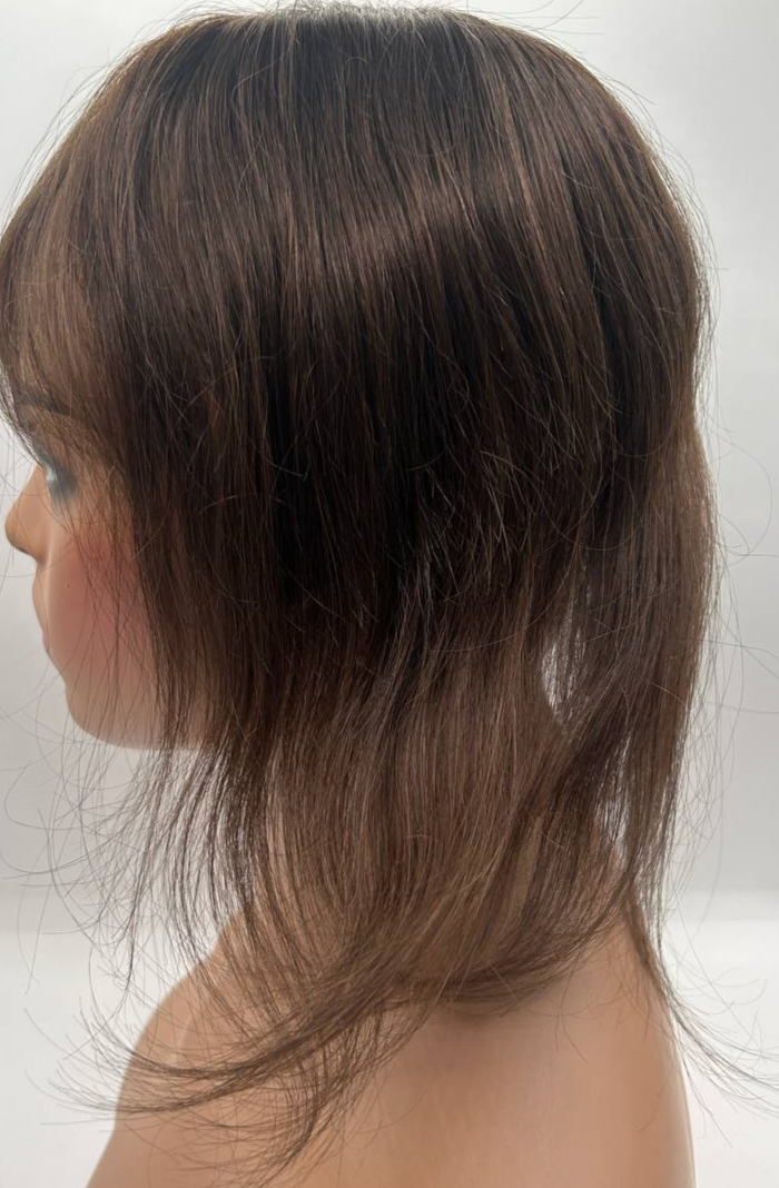 Hairro Straight 12in Human Hair Topper with Bangs 2.8"x5.1" Base Dark Brown (SA300)