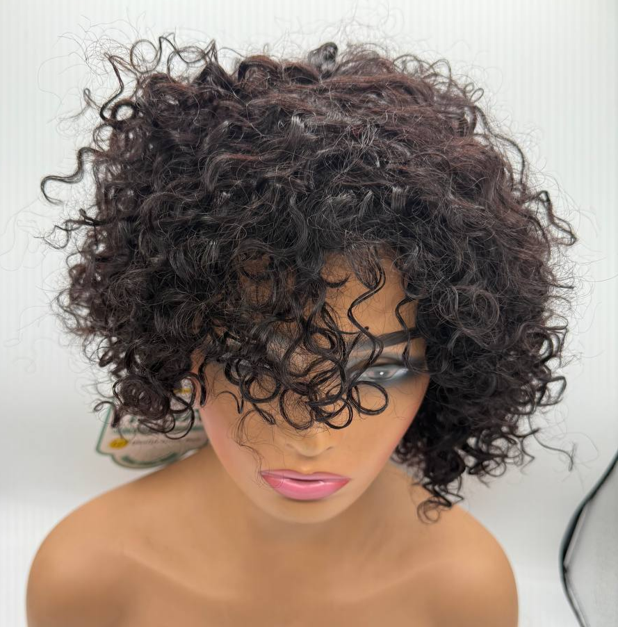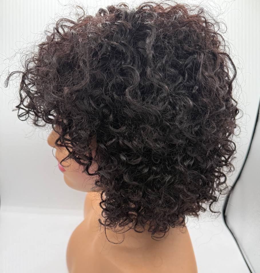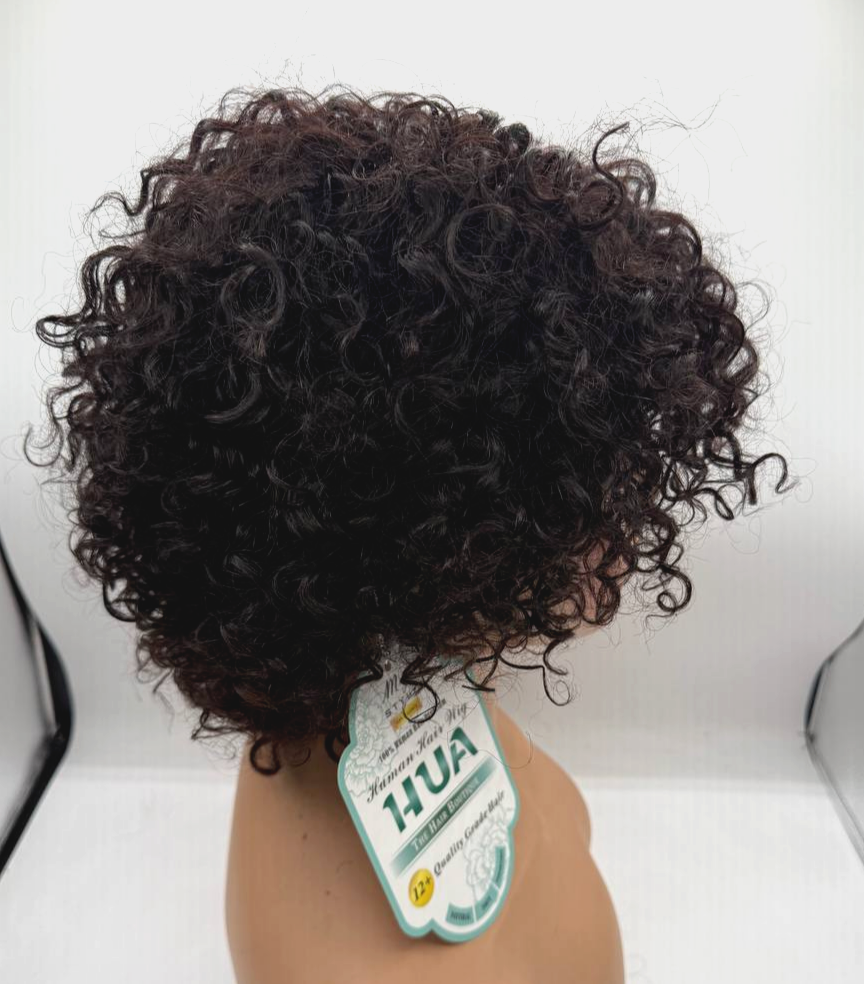 HUA Brazilian Short Kinky Curly 10 Inch Human Hair Wig Dark Brown (CR8)