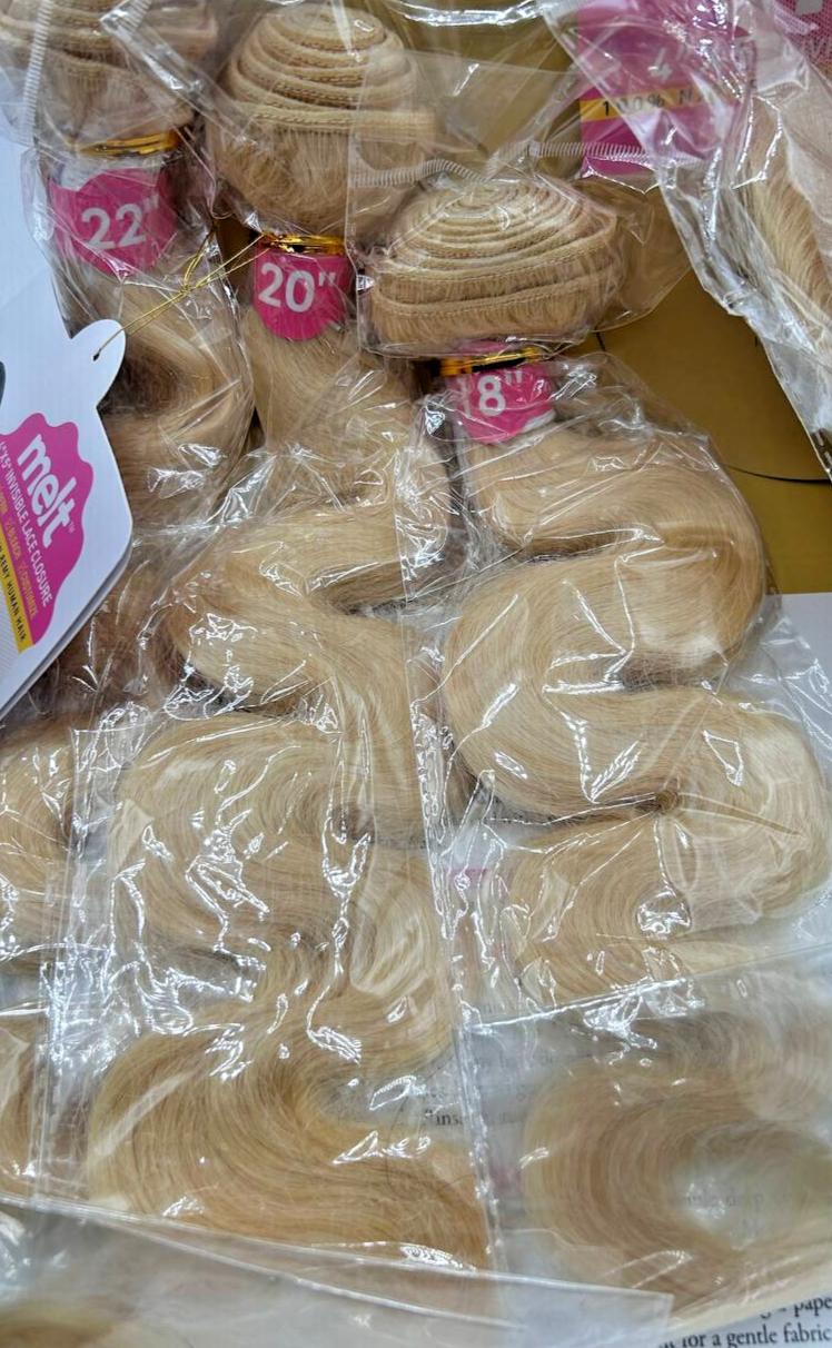Janet melt 4x5 HD Lace Closure 3 Wavy Bundles 18"20"22" 613 (SA278)