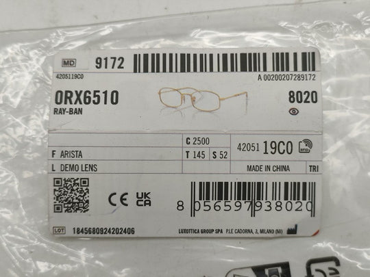 Brand: Ray-BanDepartment: Unisex AdultsFrame Color: GoldType: EyeglassesStyle: OvalLens Socket Width: N/AFrame Material: MetalVertical: N/ABridge Width: N/AFeatures: RectangularTheme: 90sTemple Length: 145 mmVintage: NoMPN: N/APattern: SolidModel: Ray-Ban Rx6520Personalized: NoUnit Quantity: 1Unit Type: UnitRay-Ban Oval Prescription Eyeglass Frames RX6510...Regular price $34.99Quick view -