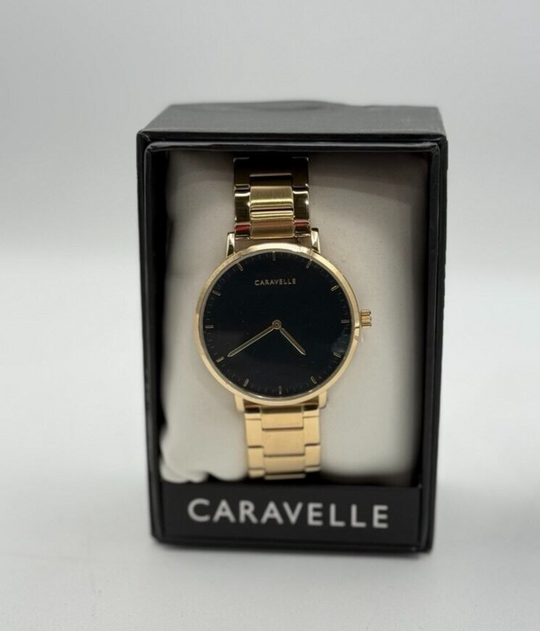Caravelle by Bulova Men's Quartz Black Dial Gold Stainless Watch 44A112
