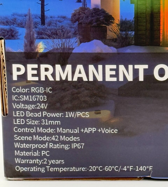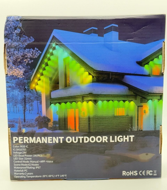 Permanent Outdoor Lights for House 200FT (CJ66)Unused in open box. Minor cosmetic damage may be present (light scratches, scuffs, dust, etc.) Item has been handled for inspection - Please anticipate signs of handling (smudges, lint, etc.)...Regular price $108.00Quick view -