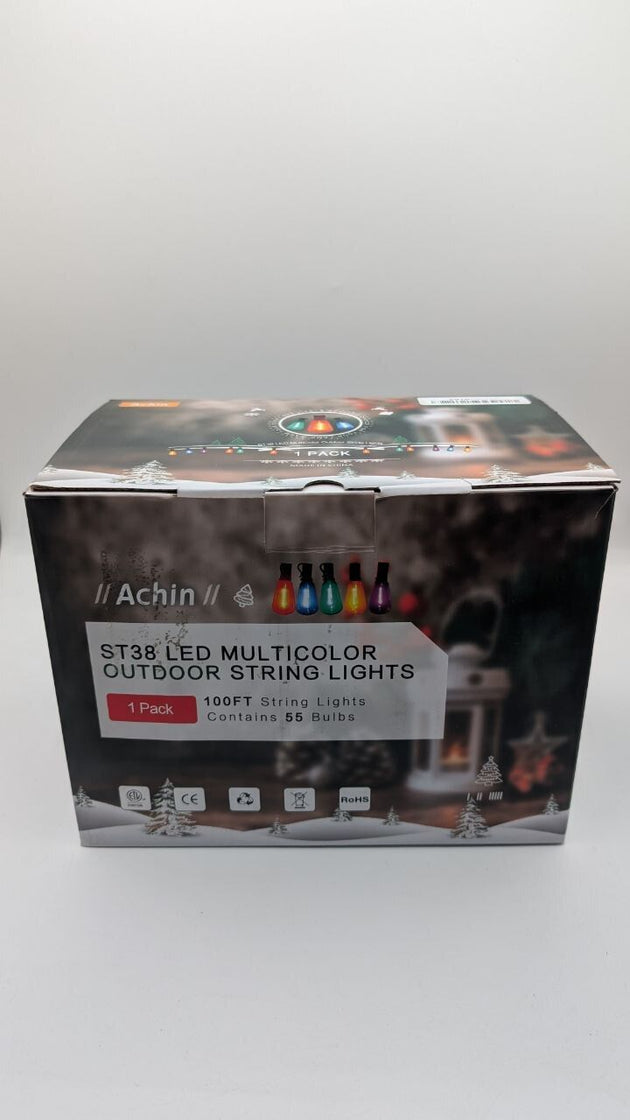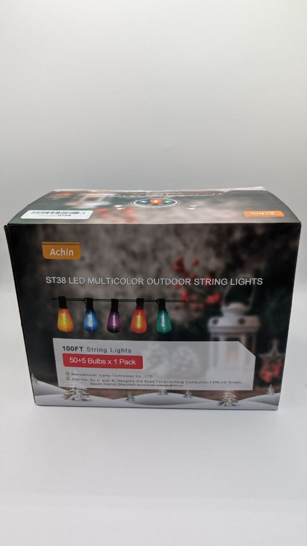 Achin Colored Outdoor String Lights, 100Ft LED Multicolor with 55 Bulbs