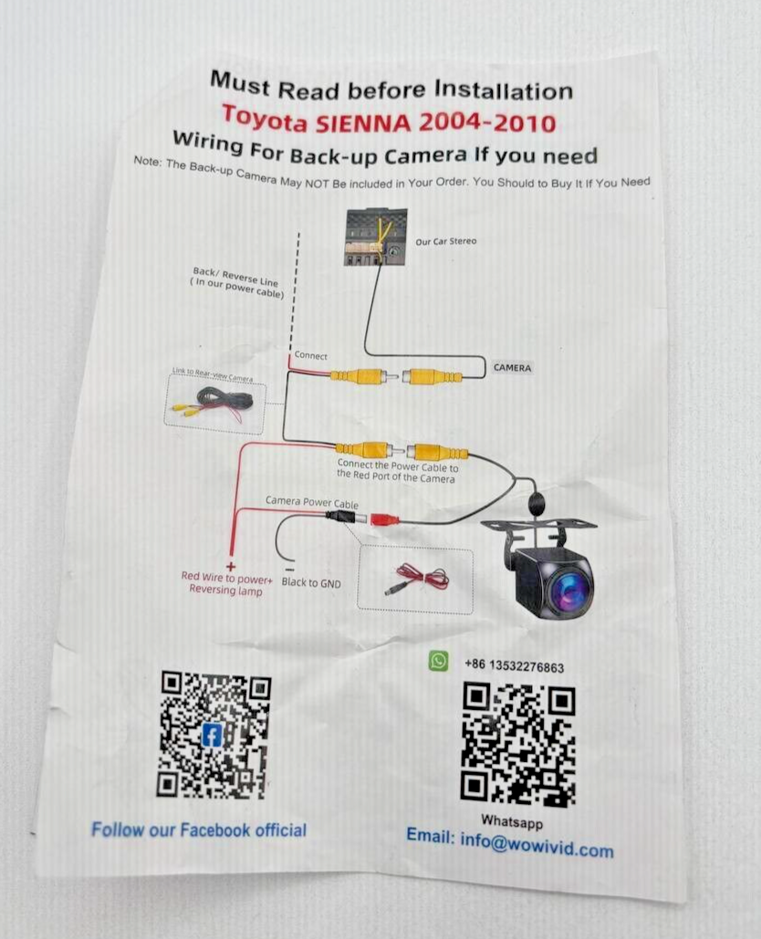- Backup camera ready to offer 170°viewing angle backup, allowing you to see behind your car. When you put on reverse gear, the screen of the sienna stereo will automatically switch to the reverse interface.