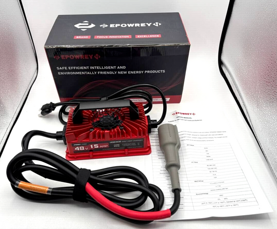 EPOWREY 15 AMP 48 Volt Golf Carts Battery Charger for Lead Acid 3-Pin Round Plug