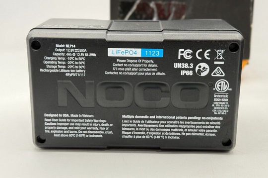 Brand: NOCOType: ChargerVoltage: 12VManufacturer Part Number: NLP14Features: Instant Starting PowerPeak Amps: 500UPC: 046221190090 NOCO Lithium NLP14, Group 14, 500A Lithium LiFePO4 Battery 12V 4Ah ATV, UTV (RG681) Item has been used before - Will show signs...Regular price $70.00Quick view -
