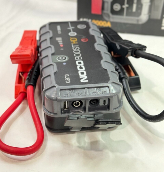 Brand: NOCOType: Jump StarterVoltage: 12VManufacturer Part Number: HD GB70Features: LED Light NOCO Boost HD GB70 2000A UltraSafe Car Battery Jump Starter, 12V Battery Booster (RG90) Item has been used before - Will show signs of usage...Regular price $120.00Quick view -
