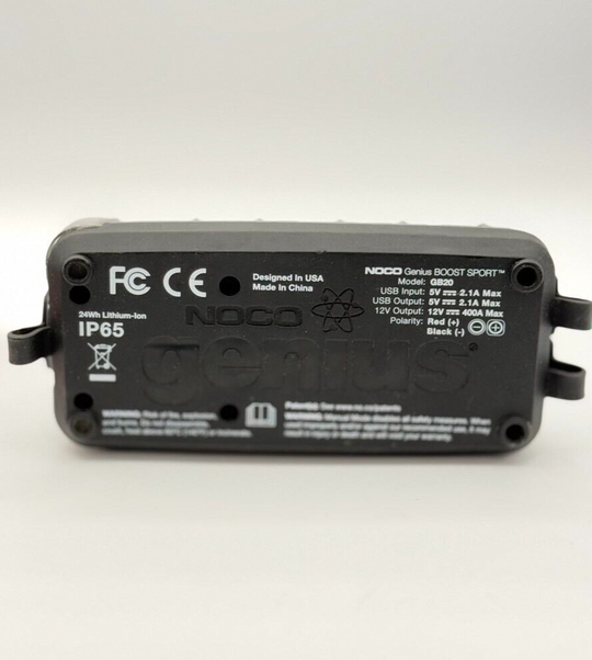 Brand: NOCOAccessories: Charging Cable,Clamps,User ManualType: Jump StarterVoltage: 12VManufacturer Part Number: GB20Set or Single Item: SetFeatures: LED Light,PortablePeak Amps: 400Amp NOCO Genius Boost Sport GB20 Jump- 4650 Joules 3S (RG599) Item has been used before - Will...Regular price $55.00Quick view -