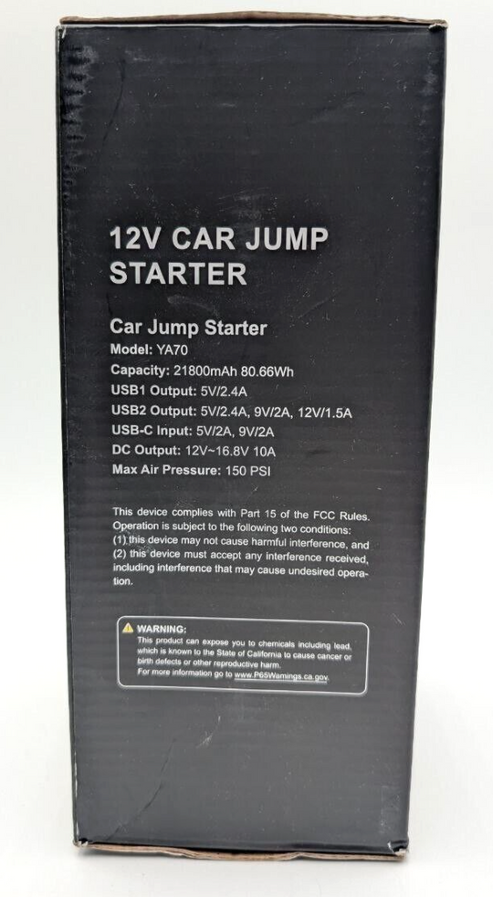 Brand: YaberAutoType: Jump StarterVoltage: 12VManufacturer Part Number: YA70Features: Air Compressor,Automatic,LED Light,Portable,USB ChargerMPN: YA70Country/Region of Manufacture: ChinaPeak Amps: 3500Amp YaberAuto Portable Car Jump Starter with Air Compressor (AR126) Item is New in Open Box. Has been removed...Regular price $69.99Quick view -