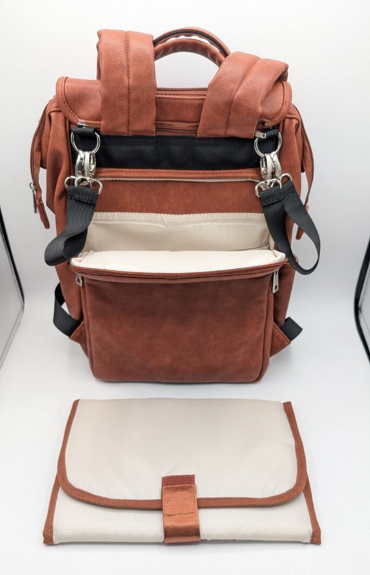 HAHASOLE Large Faux-Leather Diaper Bag Backpack with Changing Mat - Brown