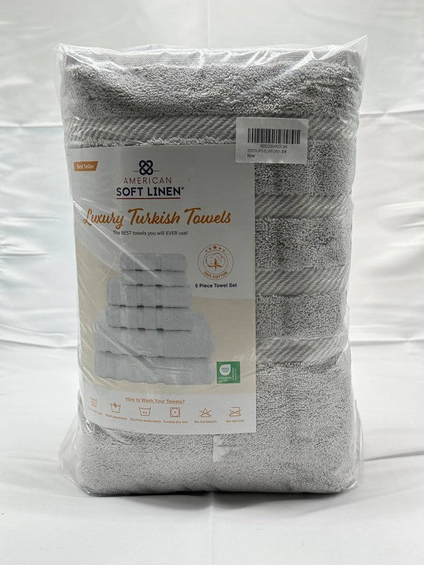 American Soft Linen 6 Piece Turkish Cotton Towel Set Silver Gray Bathroom (AU221)