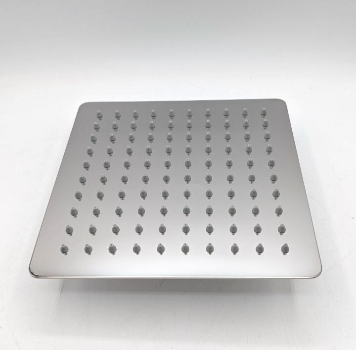 - Square design rain shower head and hand shower wand are made from stainless steel and brass.