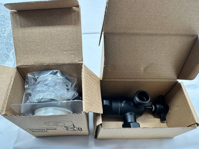 - Matte black finish; stainless steel, brass, and ABS materials