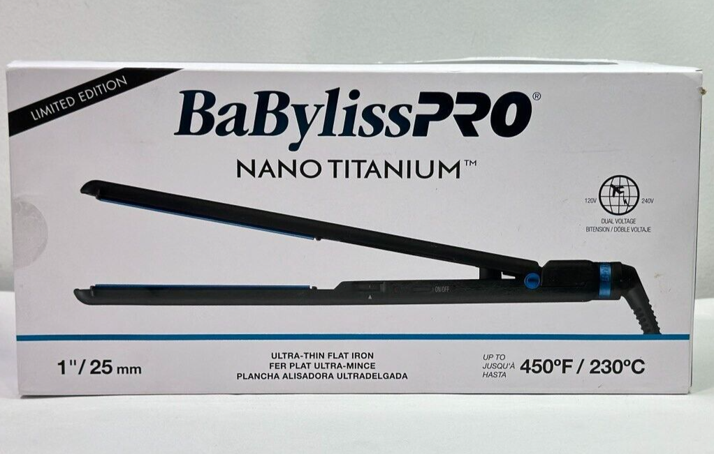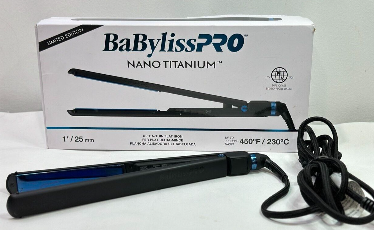 BaBylissPRO Nano Titanium 1" Ultra-Thin Flat Iron Black & Blue | BNTMB4072TUC (RB909)
