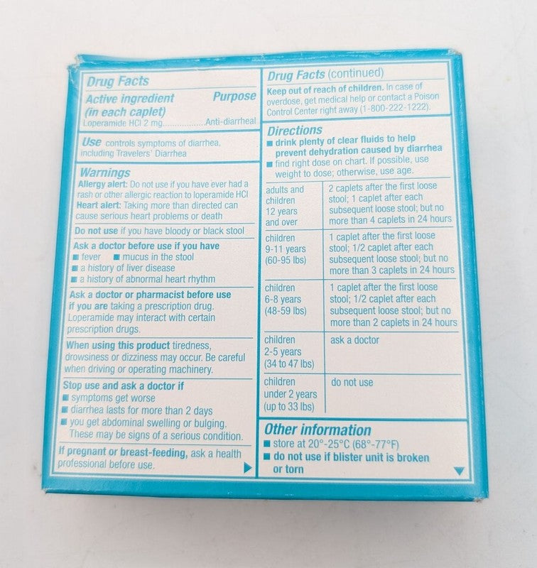 - Each caplet contains 2mg Loperamide HCl
