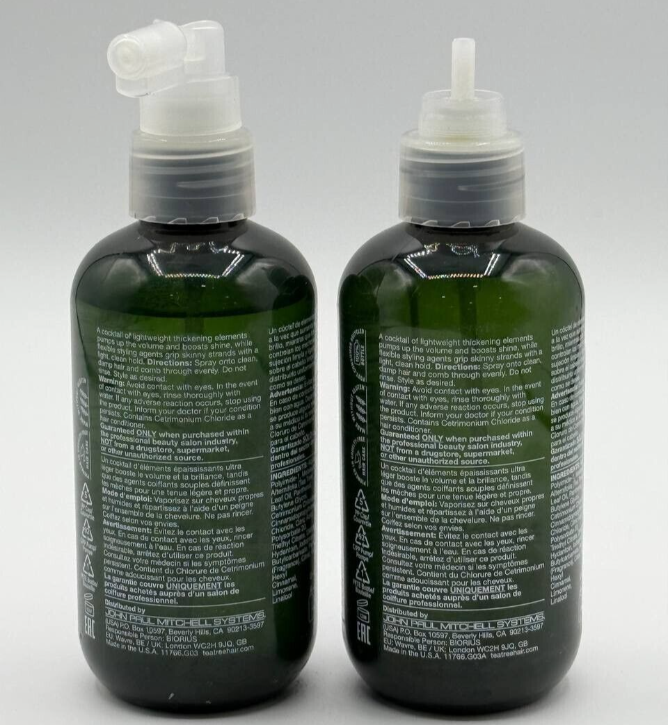 - Volumizing spray with uplifting lemon and sage helps thicken fine hair and provides grip for easier styling.