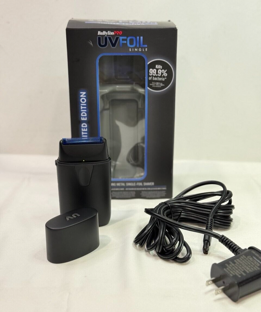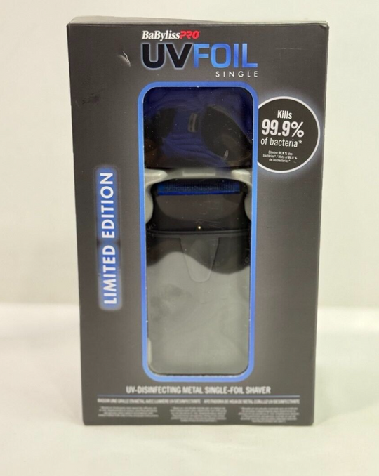 Brand: BabylissPROType: Multi-Function ShaverModel: UVFoil Single Foil UV Cordless Shaver Matte Black FXLFS1MBMPN: FXLFS1MB BabylissPRO UVFoil Single Foil UV Cordless Shaver Matte Black -FXLFS1MB (RG329) Item has been used before - Will show signs of usage...Regular price $80.00Quick view -