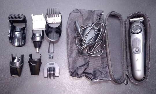 Brand: BraunType: Multi-function TrimmerDepartment: MenPower Source: Plug inColor: Black/GrayModel: Series 5 5471Body Area: Back,Body,Chest,Ear,Face,Neck,NoseFeatures: Adjustable Speed,Cordless,Hair Trimmer Option,Rechargeable,Travel Case,Washable,WaterproofMPN: AIO5471Item Length: 8 inHead Type: Beard TrimmerNumber of Heads: 1 BRAUN All-in-One Style Kit Series 5 -...Regular price $26.99Quick view -