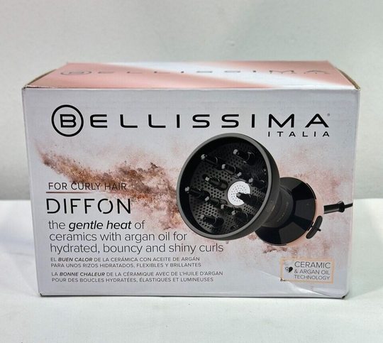 Brand: BELLISSIMA ITALIAType: Hair DiffuserColor: BlackModel: Bellissima Diffon G5604Features: Diffuser Bellissima Italia Diffon Lightweight Diffuser For Curly Hair (RB952) Item is new in open box. Has been removed from original packaging and handled for inspection -...Regular price $80.00Quick view