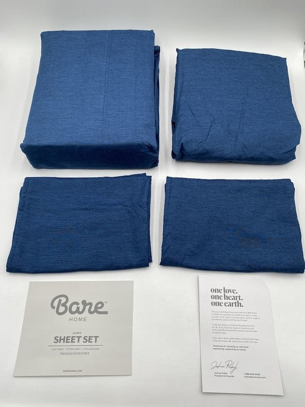 Bare Home Queen Sheet Set 1800 Ultra-Soft Microfiber Heathered Dark Blue 4 Piece (JS431)