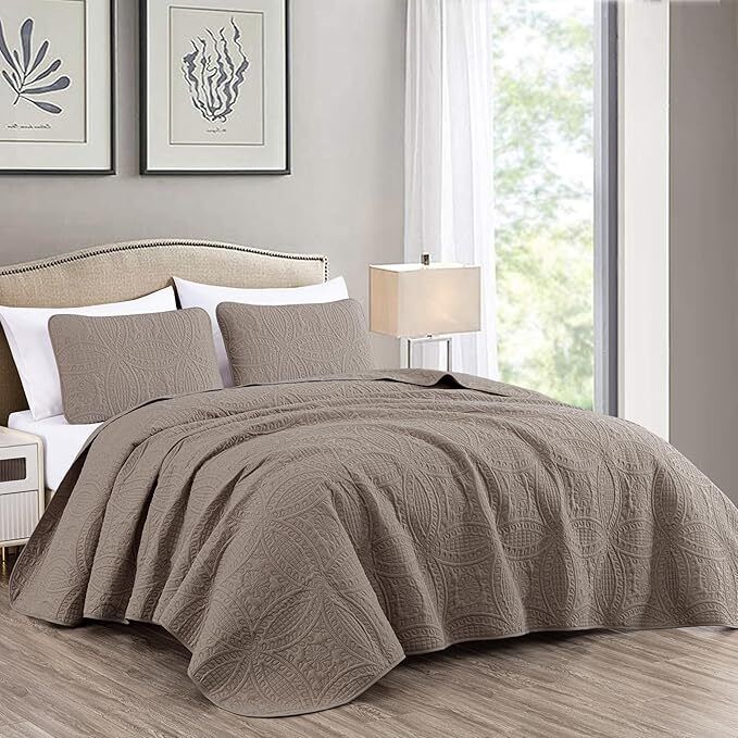 Chezmoi Collection Austin 3-Piece Oversized Bedspread Coverlet Set (King, Taupe) (TB17)