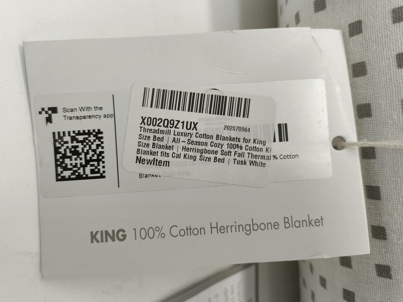 Threadmill 100% Cotton King Blanket - Herringbone Weave - Tusk White (MJ833)