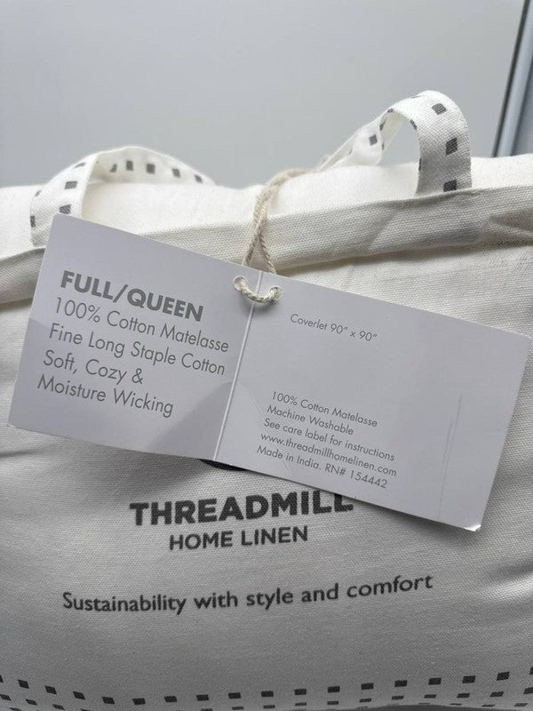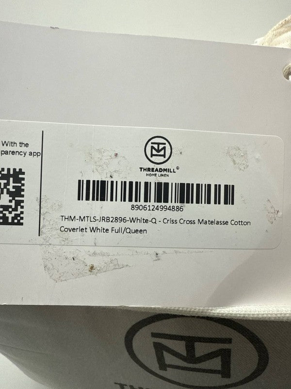 Threadmill Blanket - Queen, White, 100% Cotton, Lightweight Jacquard Coverlet (JU161)