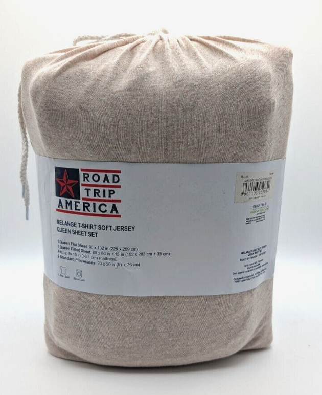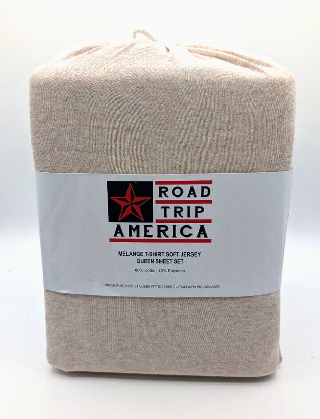 Road Trip America Queen Jersey Knit Sheet Set - 4 Pieces, Oatmeal
