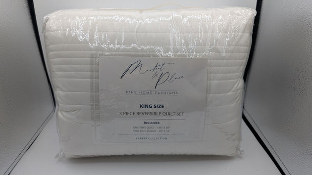 Market & Place Quilt Set King Size, Lightweight Bedspread, 3 Pcs - Ivory