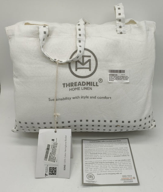 Threadmill 100% Cotton King Blanket - Herringbone Weave - Tusk White