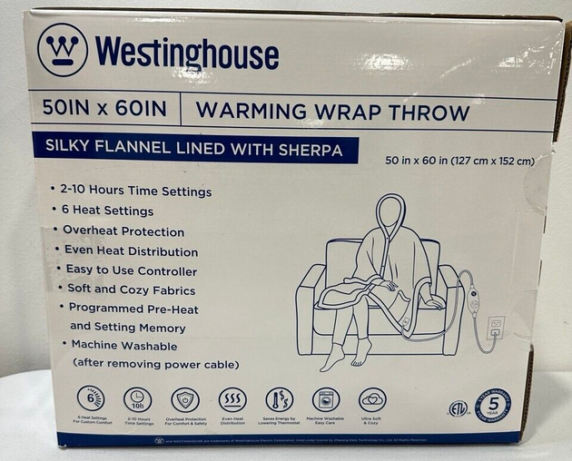 Westinghouse Warming Blanket FULL Size,Silky Flannel to Sherpa,10 Heat Settings