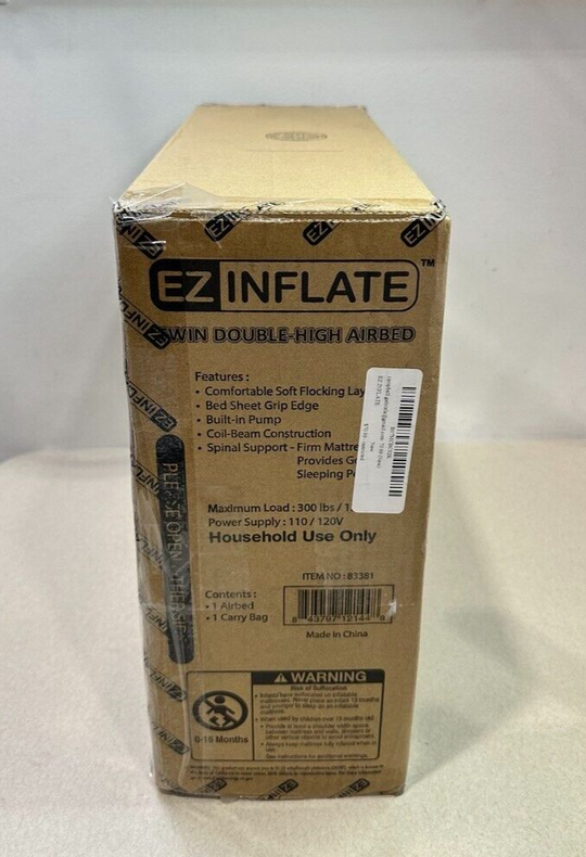 Sold out            Vendor: Does not apply Air Mattress with Built in Pump - Twin Size Double-High Inflatable Mattress New Brand: Does not applyType: Inflatable MattressEAN: 0843797121448Package Dimensions LxWxH: 16.06x13.62x5.87 InchesISBN: 0843797121448Size: TwinModel: Does not applyFeatures: Built-in PumpMPN: Does not applyWeight: 12.99 Pounds Air Mattress with Built in Pump - Twin Size Double-High Inflatable Mattress New...Regular price $60.00Quick view