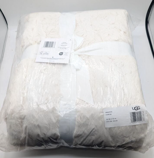 UGG Amanda Super Soft Comfy Reversible Oversized Textured Plush Flannel - Snow
