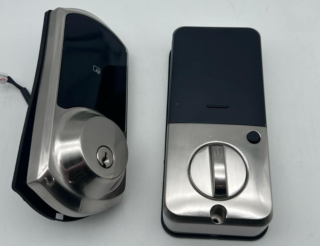 Veise KS02B Fingerprint Door Lock with Keypad & Lever Handles - Satin Nickel