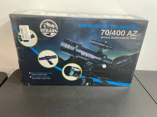Brand: BebangType: RefractorBebang Refractor Telescope 70/400 AZ with tripod (SEALED) (ER74) Item is new and unused. Please anticipate signs of handling. Outer packaging may have cosmetic imperfections/damage - does not affect the item itself. Includes all item(s)...Regular price $57.99Quick view -
