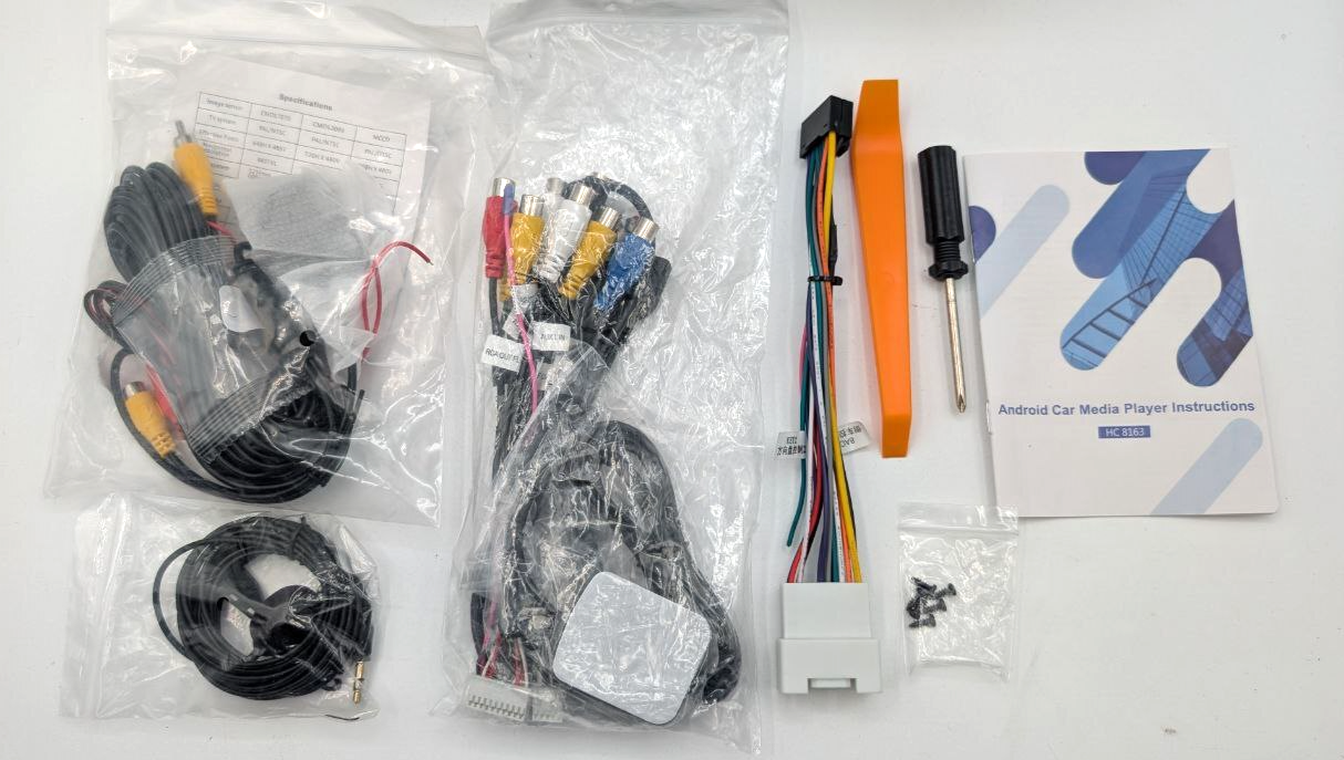 - Includes AHD backup camera, external mic, USB cables, install tools