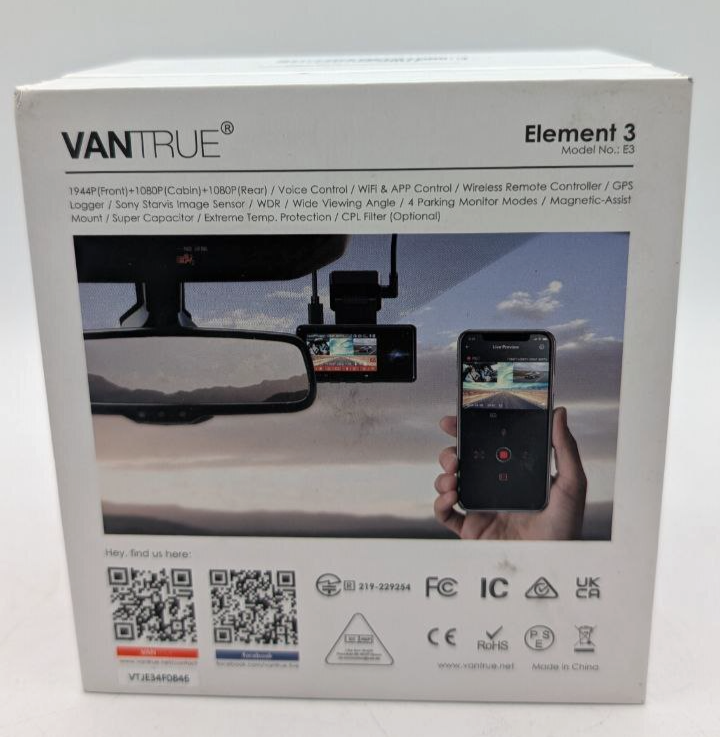 Vantrue Element 3 3CH Dash Cam w/ GPS, Wi-Fi, Voice Control, IR Night Vision (AR995)