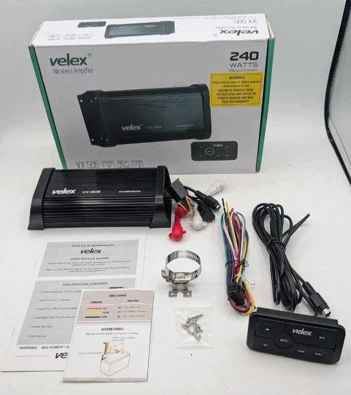 Velex Marine Bluetooth Amplifier, 4 Channel, Waterproof, 12V, W/ Controller (AT449)