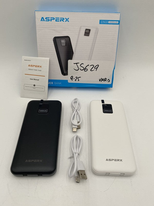 AsperX 2-Pack 10000mAh Portable Charger Built-in Cables LED Display Black