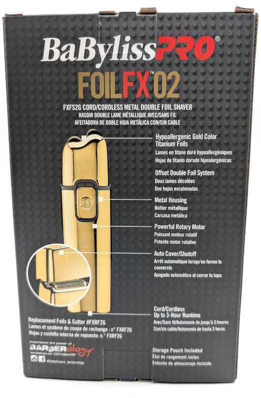 BaBylissPRO FOILFX Double Foil Shaver - Cordless Gold Metal Razor - FXFS2G