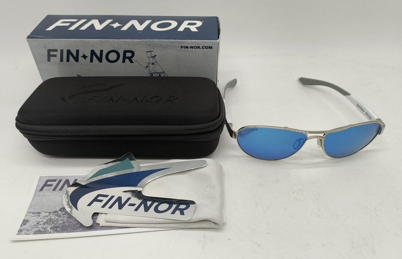 Fin-Nor Sea Shore Sunglasses - Silver/Blue Frame - Polarized Blue 59mm Lens