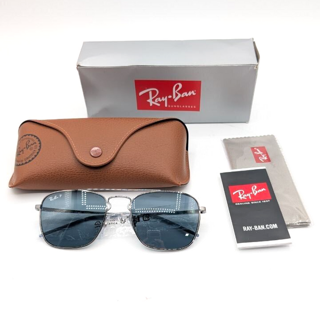 Ray-Ban RB3588 Square Sunglasses, 55/19/140 - Gunmetal/Dark Blue Polarized