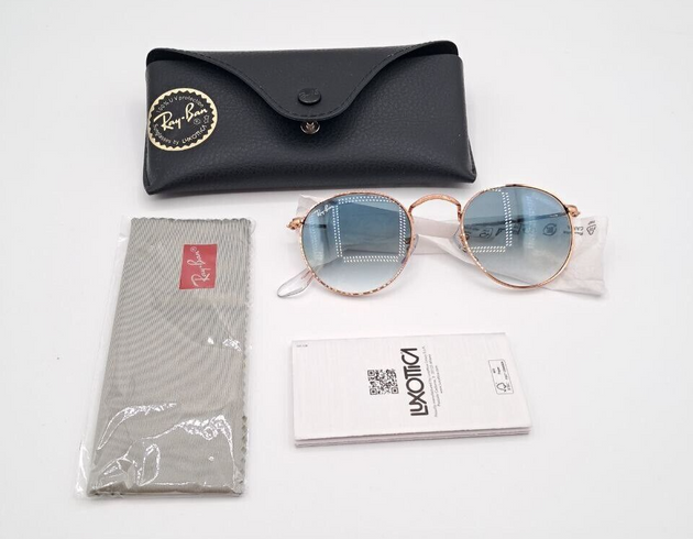 Ray-Ban RB3447 Round Metal Sunglasses - Rose Gold/Clear Gradient Blue