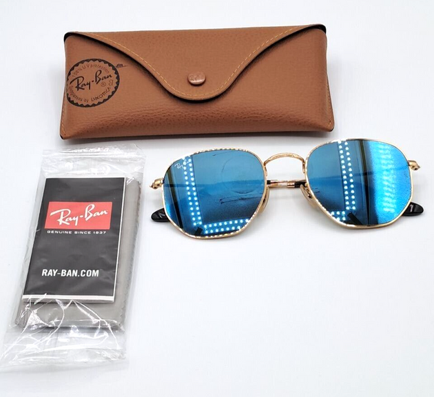 Ray-Ban RB3548N Hexagonal Flat Lens Sunglasses - Gold/Blue Gradient Grey