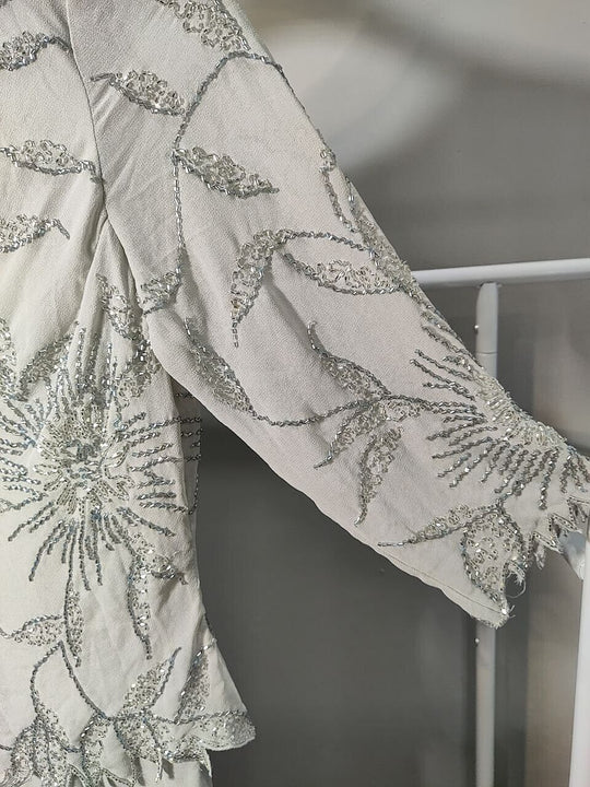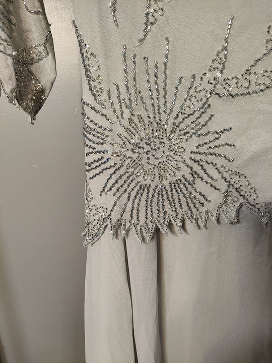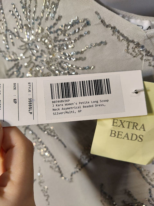 J Kara Women's Petite 3/4 Sleeve Scoop Neck Asymmetrical Beaded Dress, 6P