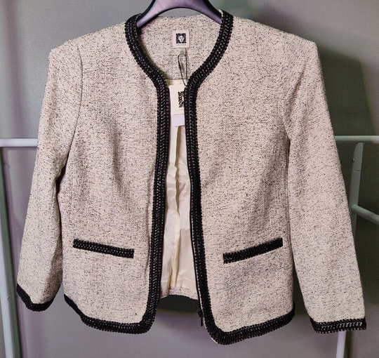 Brand: Anne KleinSize Type: RegularOuter Shell Material: 55% Cotton, 45% PolyesterType: JacketDepartment: WomenClosure: ZipSize: 8Color: BeigeStyle: Basic JacketAnne Klein Women's Collarless Jacket with Trim, Size 8 (E79) Item is new with tags. Item has been handled...Regular price $60.00Quick view -