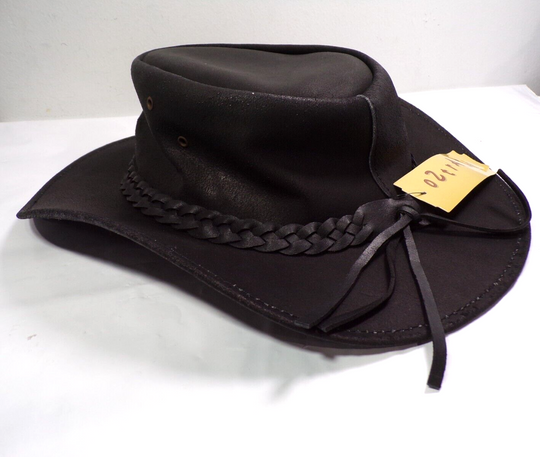 Brand: OztralaDepartment: Unisex AdultsSize: XLColor: BlackModel: H11Style: Cowboy HatTheme: Western,OutbackMaterial: LeatherFeatures: Packable,Water Resistant,Eyelets for Air Circulation Oztrala Oiled Leather Australian Outback Cowboy Hat size XL (T129) Item is new with tags. Item has been handled for...Regular price $60.00Quick view