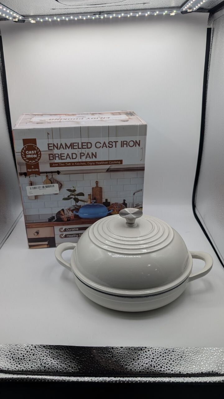 - The cast iron pot is features a tight-fitting lid to lock in nutrients, The optimal size and dome shape provides sufficient space for the bread dough to expand during the baking process.