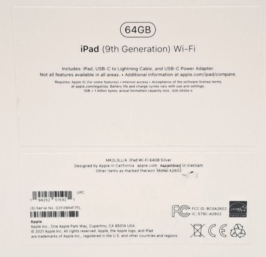 Apple iPad 9th Generation with A13 Bionic Chip, 64G, Silver (MD454)