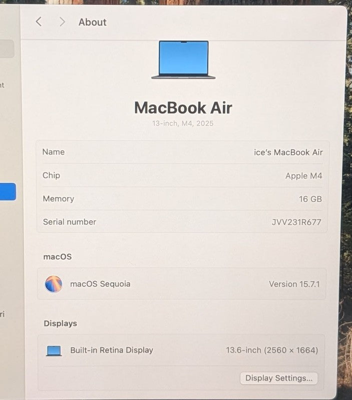 - MacOS Version: Sequoia 15.7.1